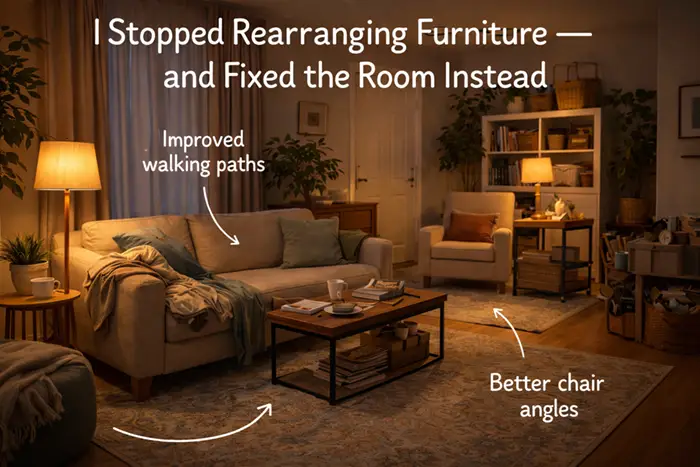 For a long time, I thought the solution to a room that felt “off” was to keep moving things around. Couch here. Chair there. Desk angled differently. Every few weeks I’d try again, convinced I just hadn’t found the right layout yet. But no matter how much I rearranged, the room still felt awkward — like it was working against me instead of with me.