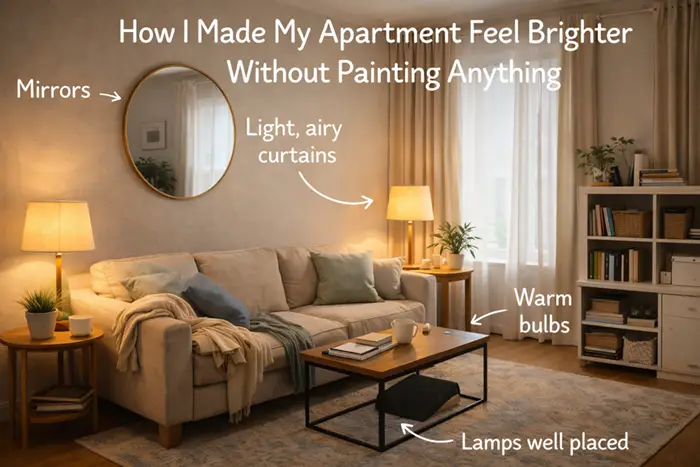 For a long time, my apartment felt dim in a way I couldn’t quite explain. It wasn’t dark exactly — there were lights on, windows uncovered — but the space still felt flat and heavy. I kept thinking the walls needed a lighter color, even though painting wasn’t an option. It turns out the problem wasn’t the walls at all.